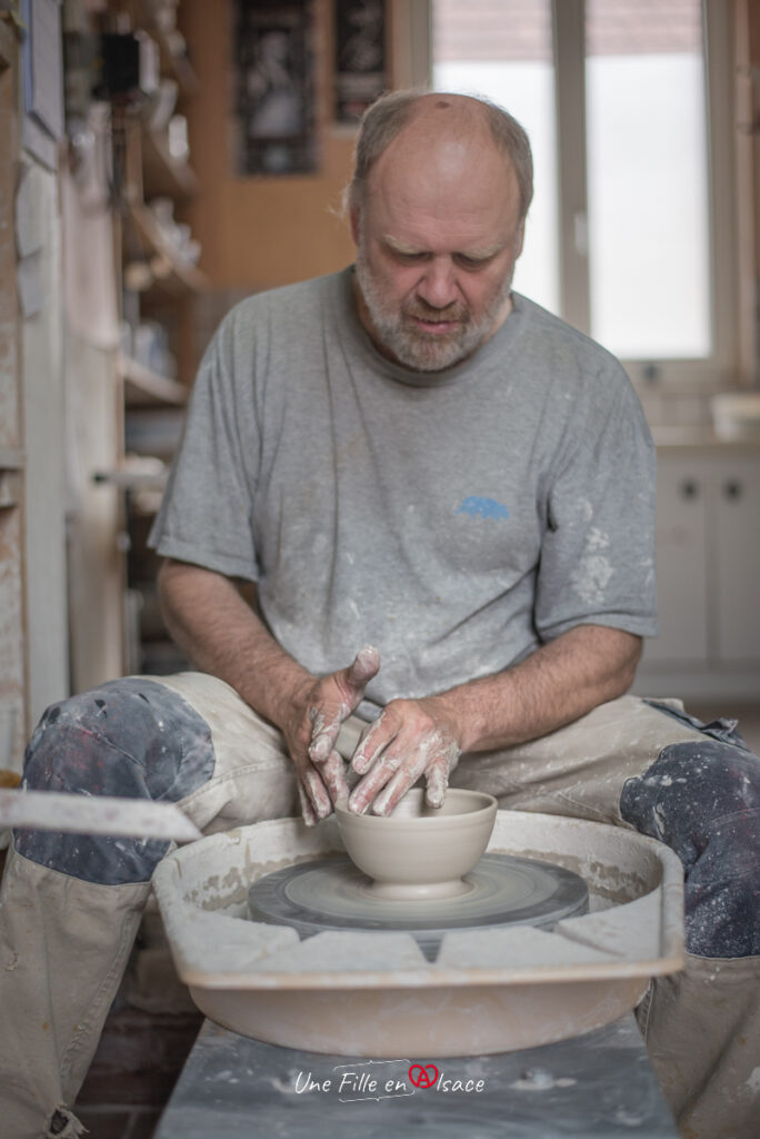 La première fois que je suis allée à Betschdorf, j’ai eu l’occasion d’essayer. Tourner l’argile.