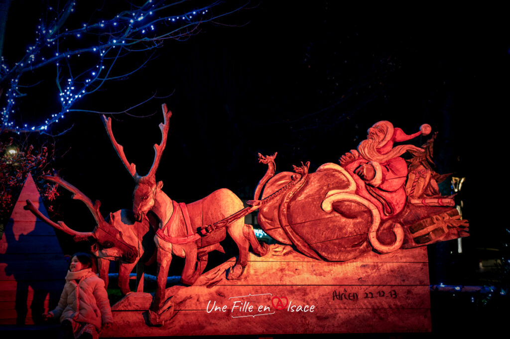J’ai aussi craqué pour la crèche en bois sculpté, les arbres à vœux, et le traîneau du Père Noël, parfait pour les photos souvenirs en famille.