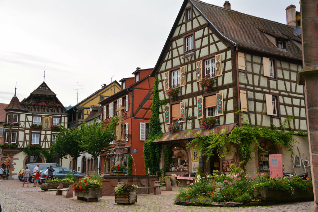Rendez-vous est pris pour le samedi 25 juillet ! Programme établis : rendez-vous à l’Office de Tourisme pour récupérer les vélos à assistance électrique Movelo pour se rendre en fin de matinée à la cave, promenade et retour à vélo l’après-midi et restaurant en soirée. Je guette le ciel, pas de chance comme un peu partout en France, il pleut comme vache qui pisse… Le vélo c’est pas gagné… On passe à l’Office de Tourisme de Kaysersberg et on se dit que si jamais dans l’après-midi ça s’arrête, on repassera récupérer les vélos…