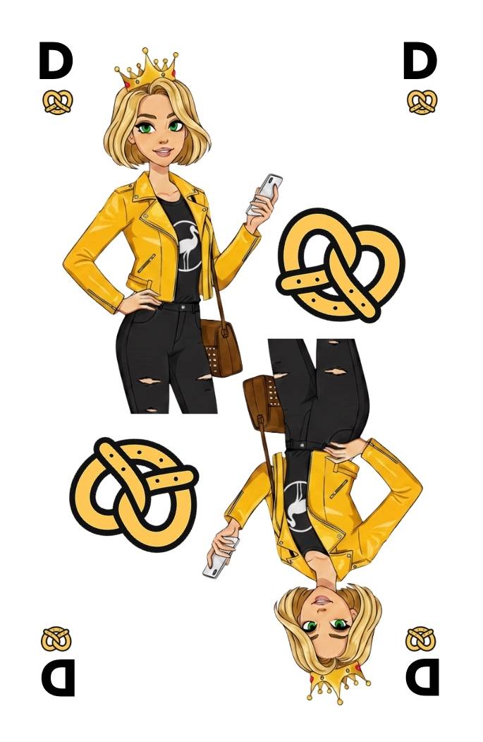 Les Roi, Dame, Valet et Joker ont été entièrement créés sur la base du personnage emblématique du logo Une Fille en Alsace, dans un style moderne et alsacien à la fois.